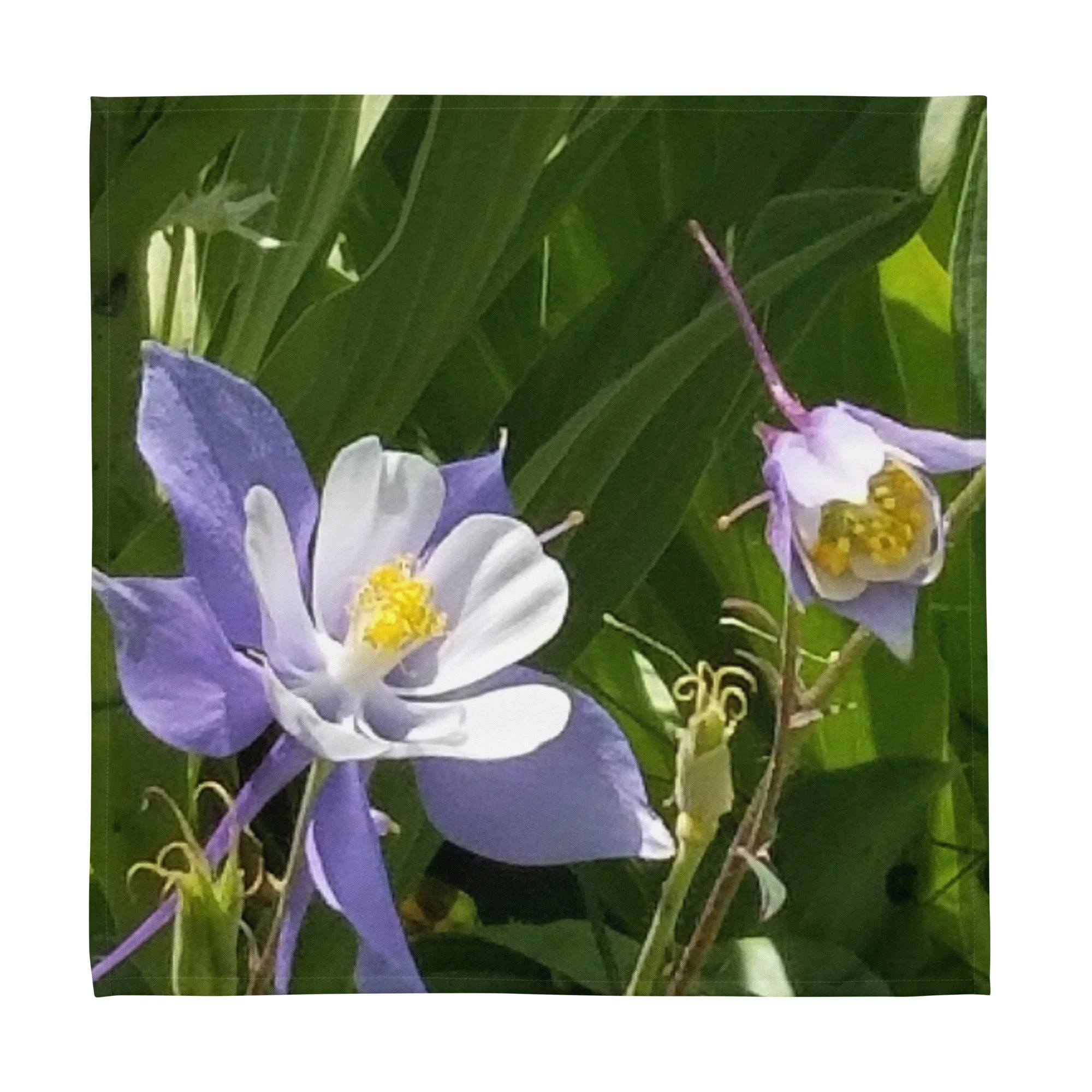 Greetings! This is an original photograph taken of Columbine flowers near the shores of Cataract Lake, in Summit County, Colorado. Rocky Mountain High! These precious flowers only bloom for a few short weeks; then they disappear into memory until summer rolls around again. Columbine (Aquilegia coerulea) is the state flower of Colorado – and it means “sky blue.” So true!