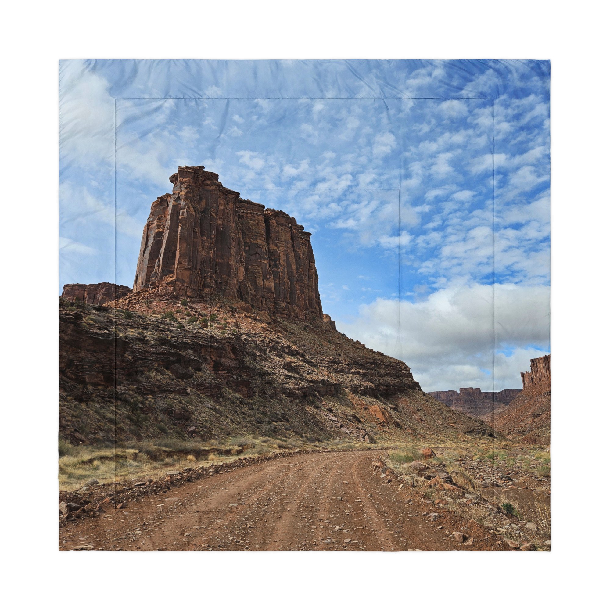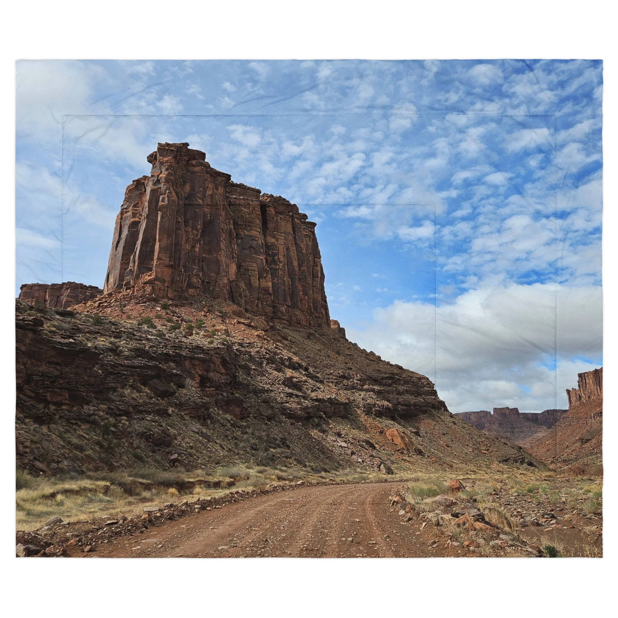 Greetings! This is an original photograph, taken near Moab, Utah (just up the Potash Road along the Colorado River). It was a nice warm, sunny day – a good day for a stroll up Long Canyon (a dirt road that gets more and more rough as it travels toward Dead Horse Point State Park). The towering red-rock cliffs and dazzling blue sky painted a landscape that is – as always in this area – timeless. Whether you were journeying with the ones before the ones who lived in these sacred places or walking the walk today, it’s movement and flow beyond words.
