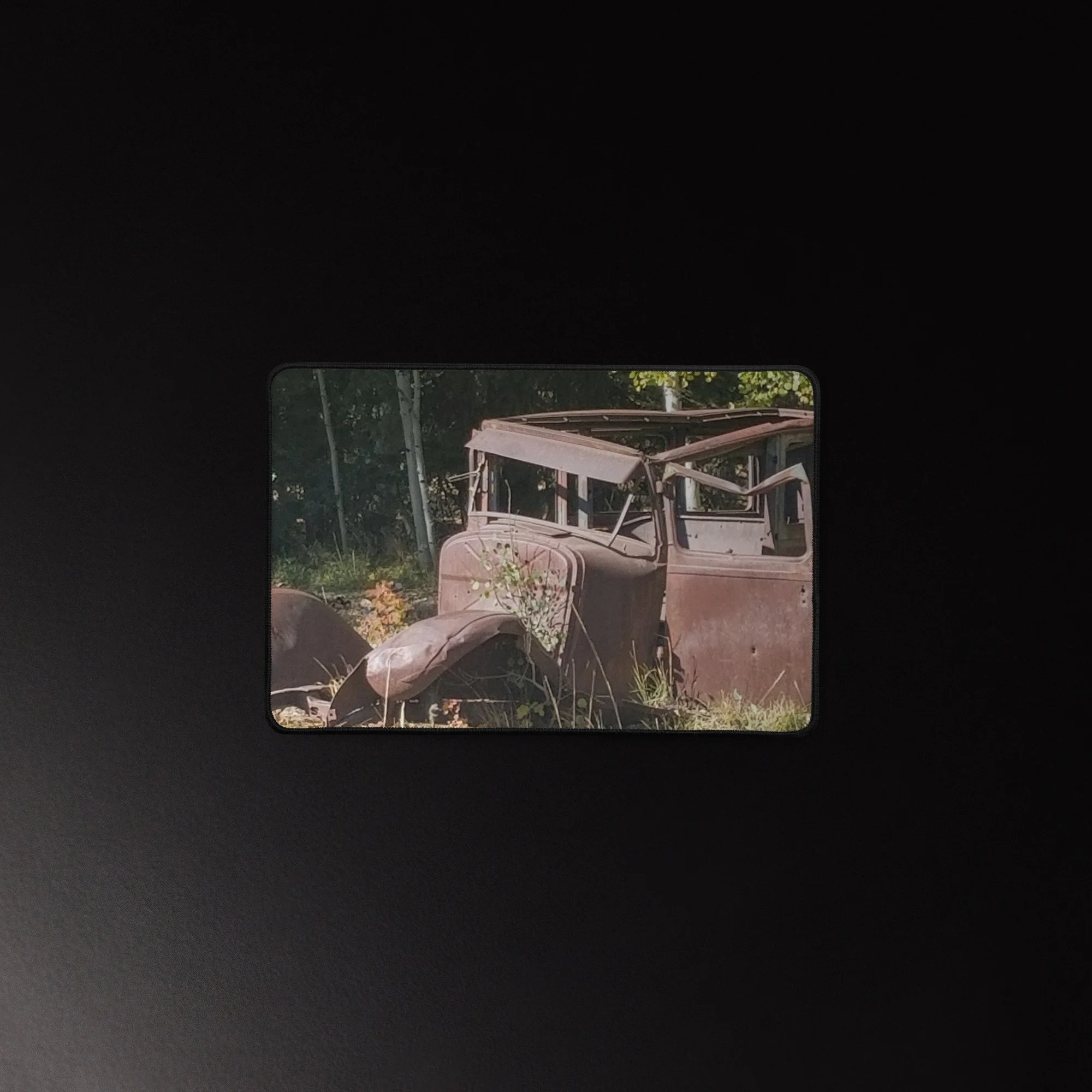 Greetings! This is an original photograph, taken along an old dirt road high in the Colorado Rockies. Doubt the road has changed since those journeying with this car went out for a picnic (or a bank robbery -- are those bullet holes?)! Always fun to reflect on the ways people used to get out and about and explore!