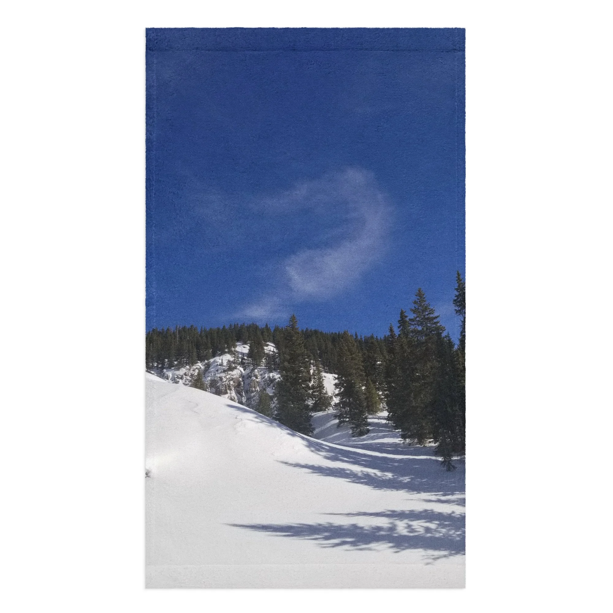 Greetings! This is an original photography, taken in the Colorado mountains. It was the morning after a fresh snow – and I couldn’t resist the “champagne powder” that Colorado is so famous for! (Not to mention to deep blue skies with dancing white clouds!) It was cold out and the sun wasn’t sure it was ready to come out, but the sparkling snow made me happy I was out!