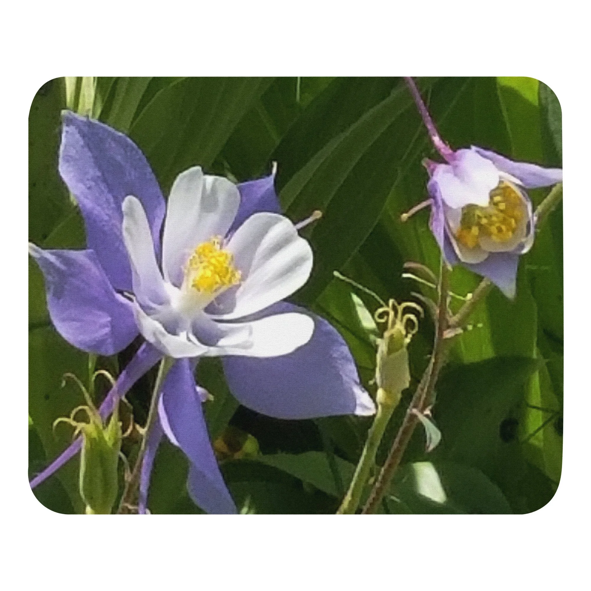 Greetings! This is an original photograph taken of Columbine flowers near the shores of Cataract Lake, in Summit County, Colorado. Rocky Mountain High! These precious flowers only bloom for a few short weeks; then they disappear into memory until summer rolls around again. Columbine (Aquilegia coerulea) is the state flower of Colorado – and it means “sky blue.” So true!