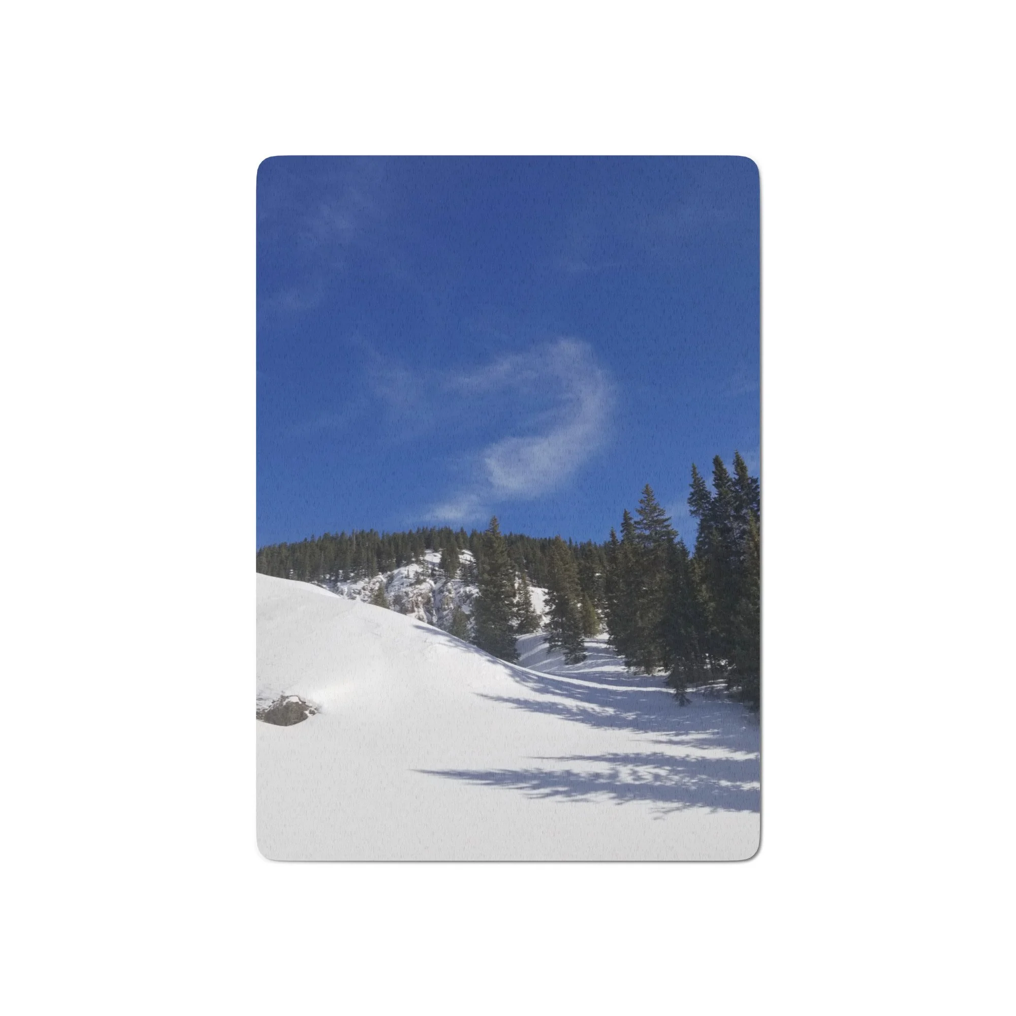 Greetings! This is an original photography, taken in the Colorado mountains. It was the morning after a fresh snow – and I couldn’t resist the “champagne powder” that Colorado is so famous for! (Not to mention to deep blue skies with dancing white clouds!) It was cold out and the sun wasn’t sure it was ready to come out, but the sparkling snow made me happy I was out!