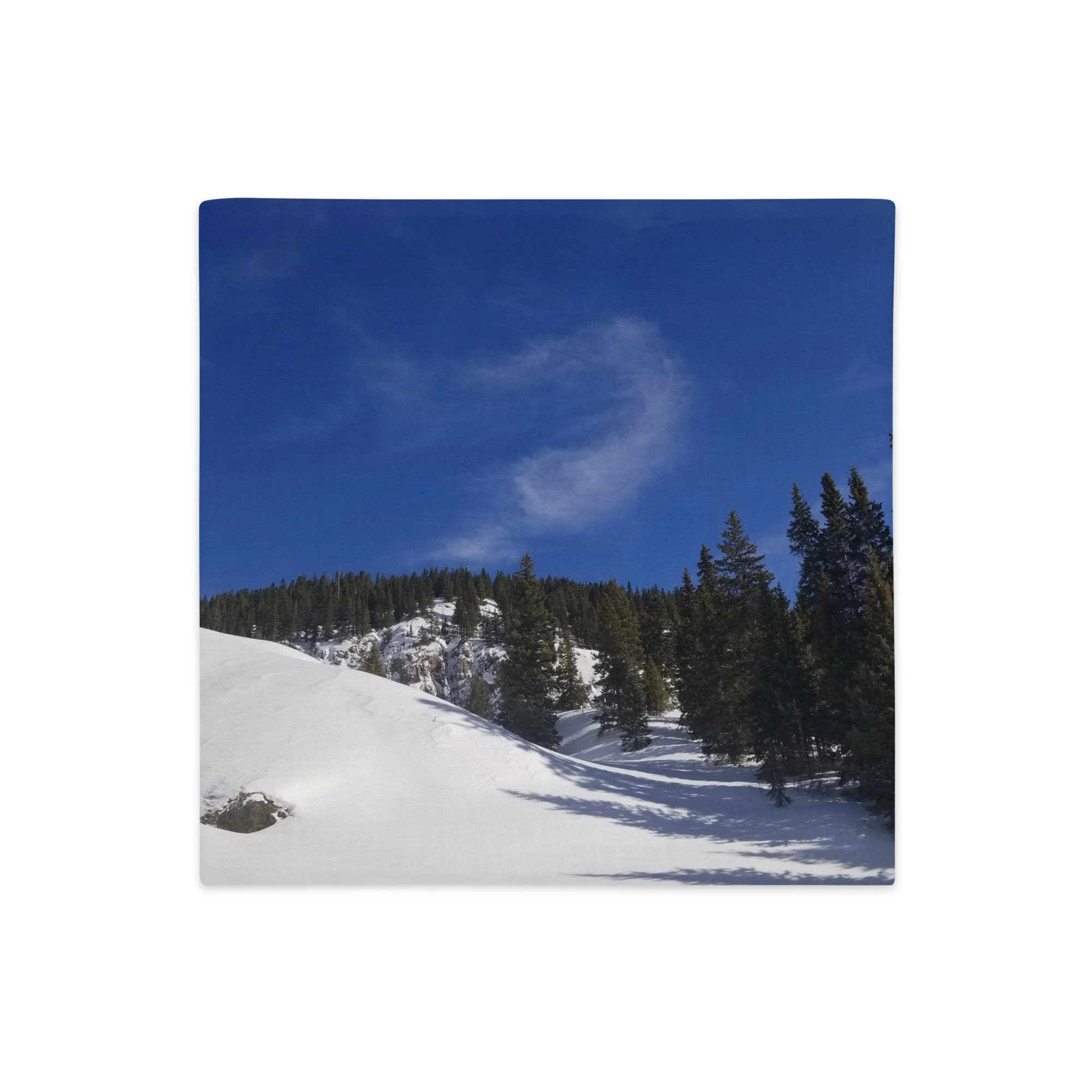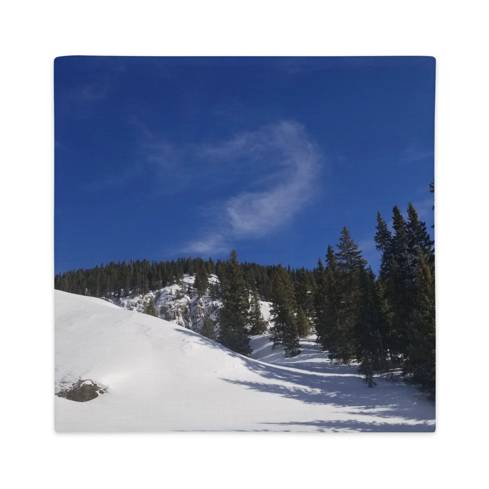 Greetings! This is an original photography, taken in the Colorado mountains. It was the morning after a fresh snow – and I couldn’t resist the “champagne powder” that Colorado is so famous for! (Not to mention to deep blue skies with dancing white clouds!) It was cold out and the sun wasn’t sure it was ready to come out, but the sparkling snow made me happy I was out!