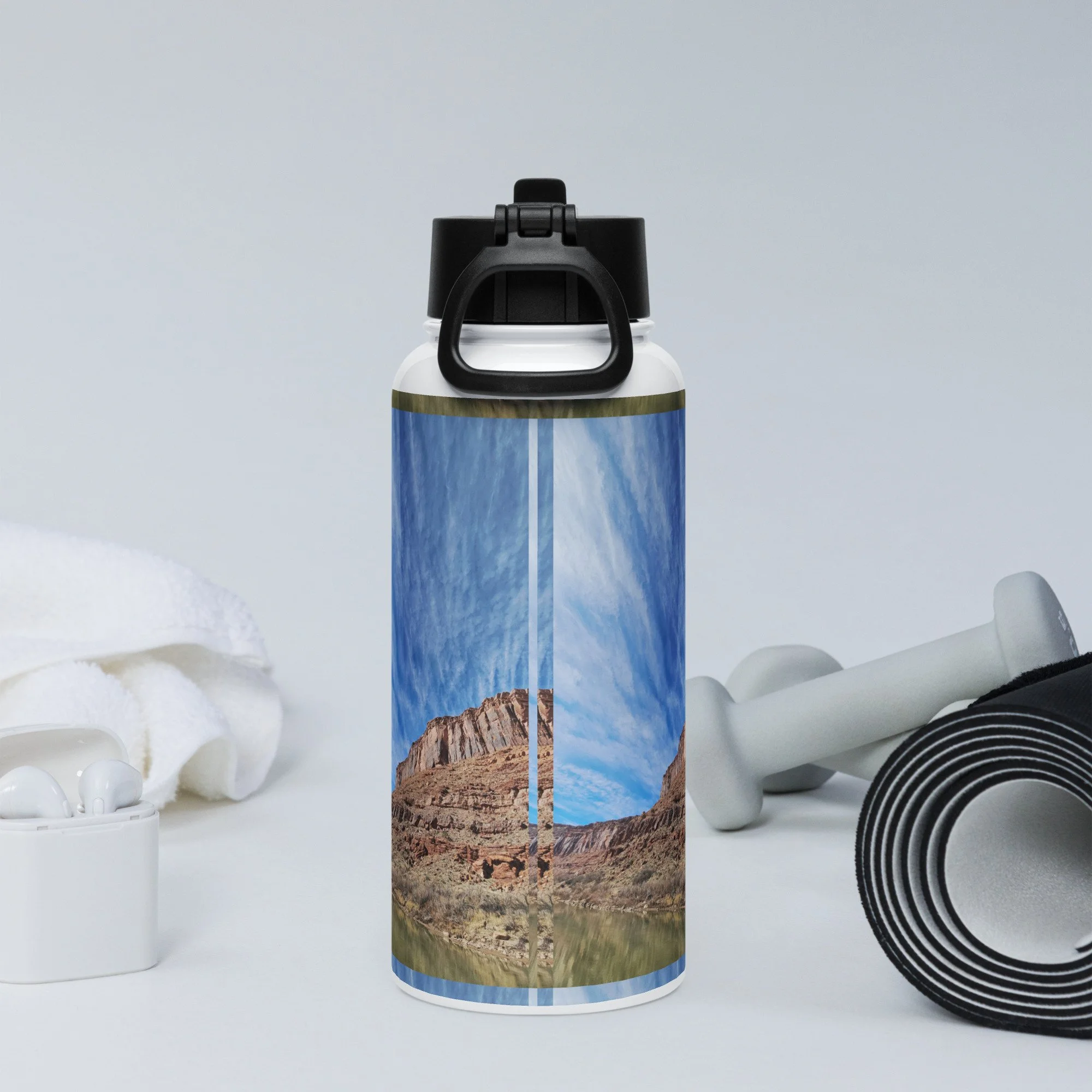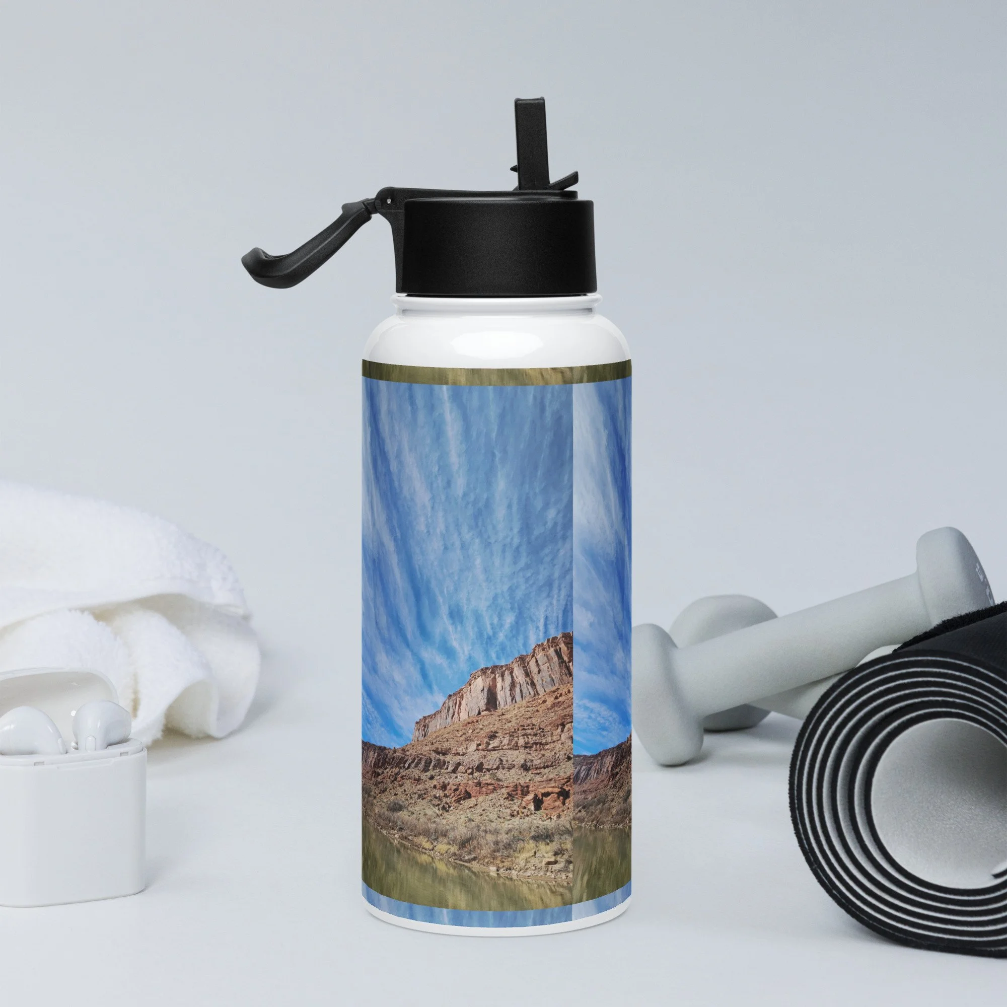 Stay hydrated all day with this 32 oz (950 ml) water bottle. It’s ideal for workouts or busy days, with a wide-mouth foldable straw for spill-free sipping and a rotating handle for easy carrying.