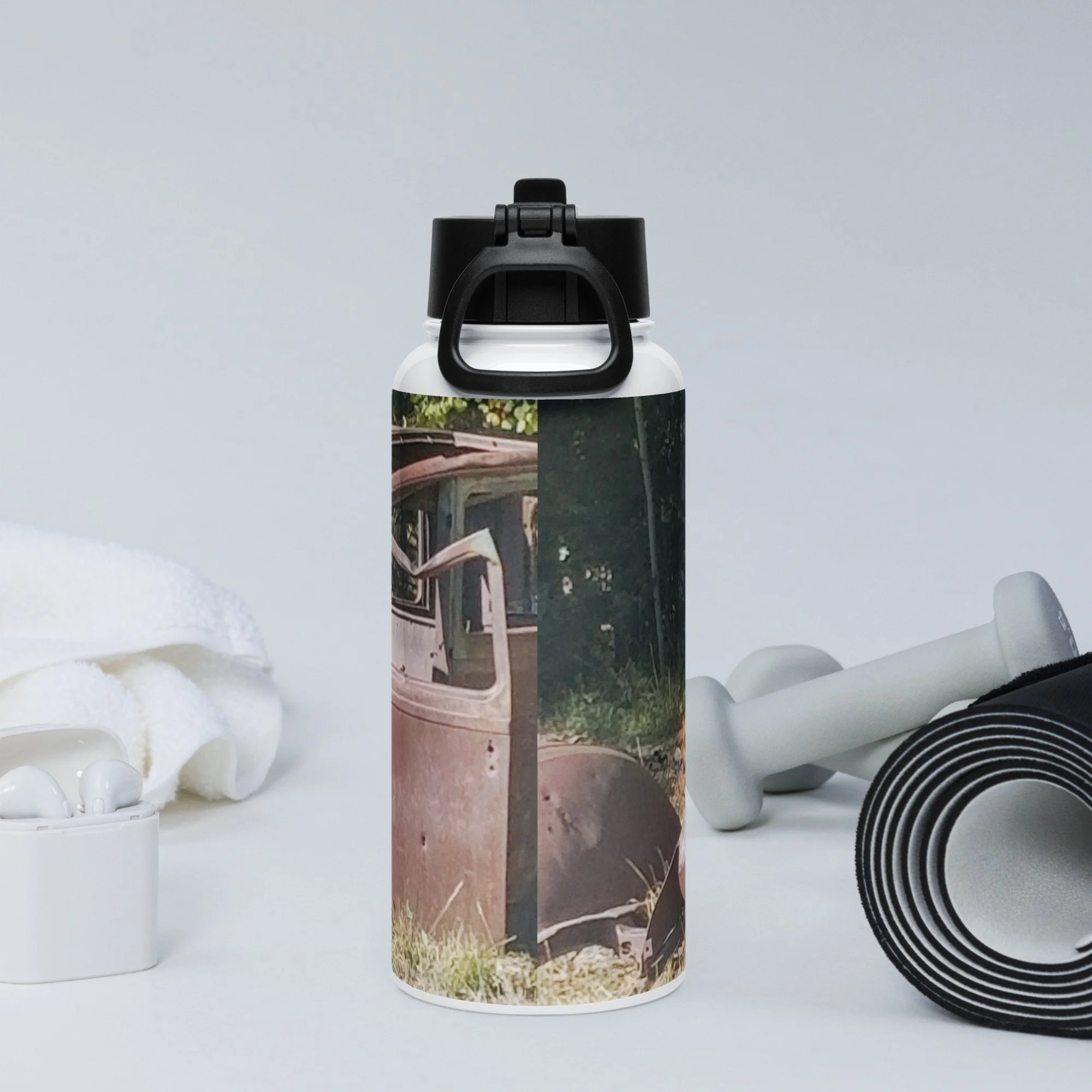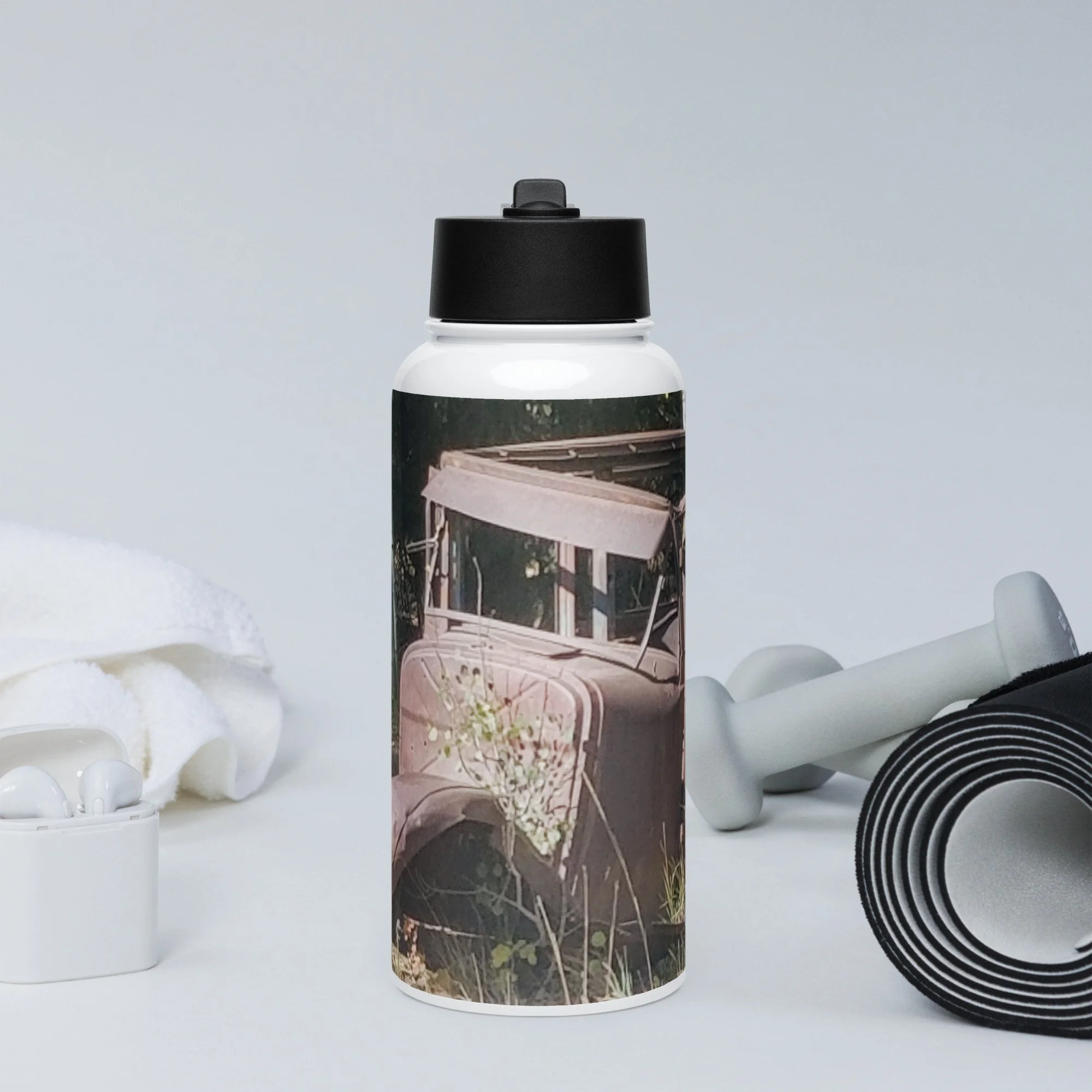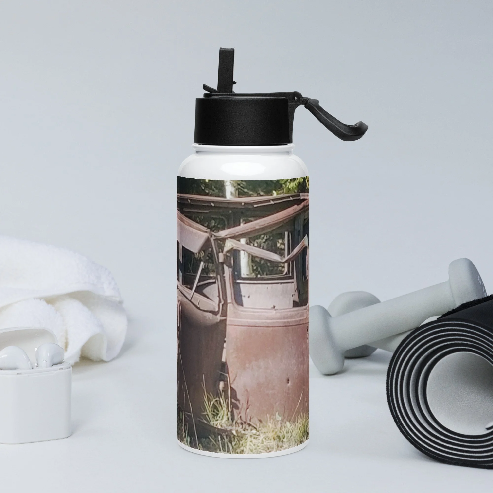 Stay hydrated all day with this 32 oz (950 ml) water bottle. It’s ideal for workouts or busy days, with a wide-mouth foldable straw for spill-free sipping and a rotating handle for easy carrying.