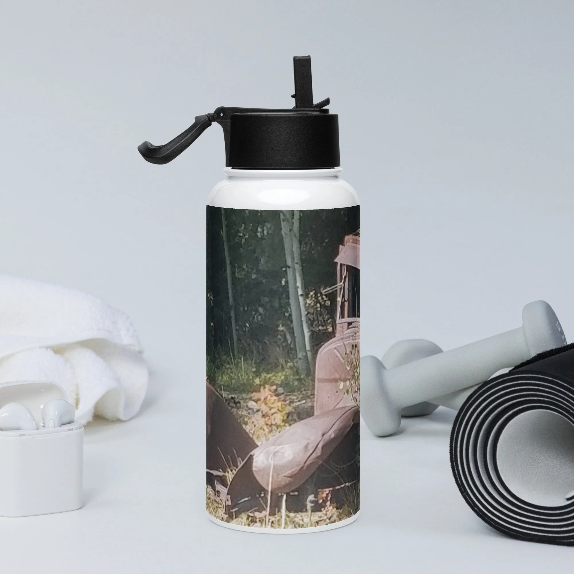 Stainless steel water bottle with a straw lid