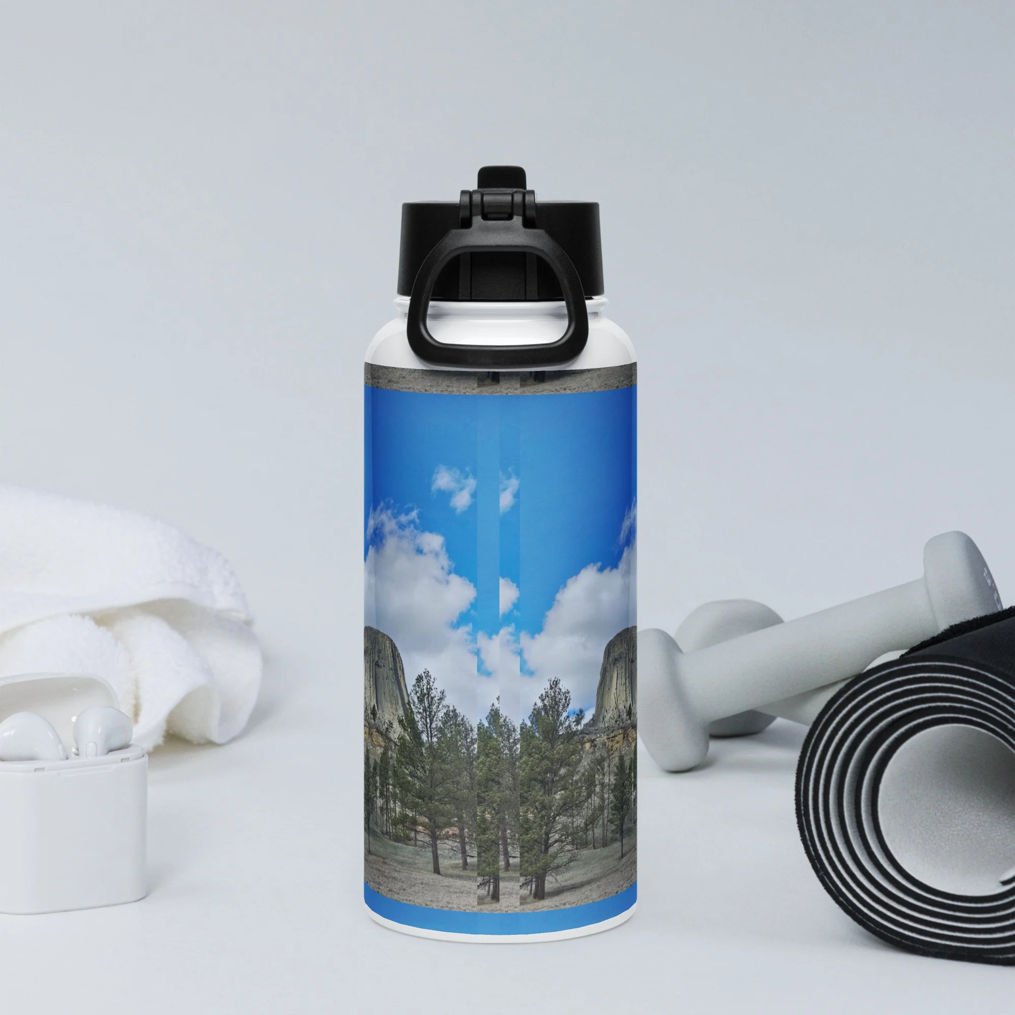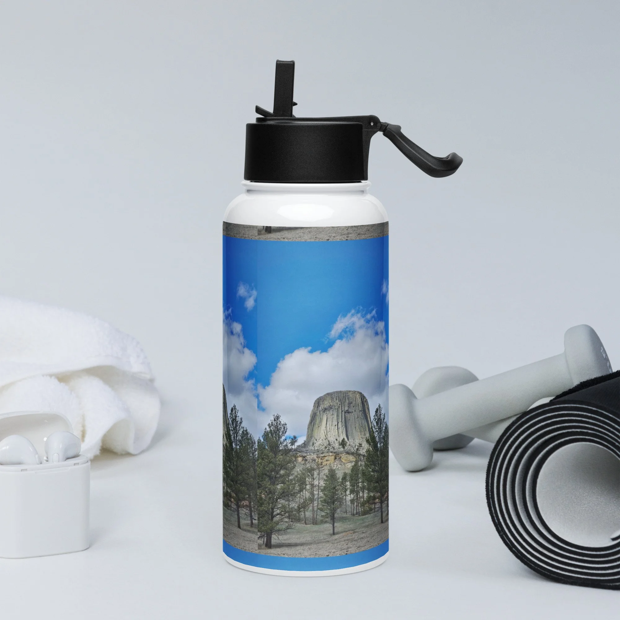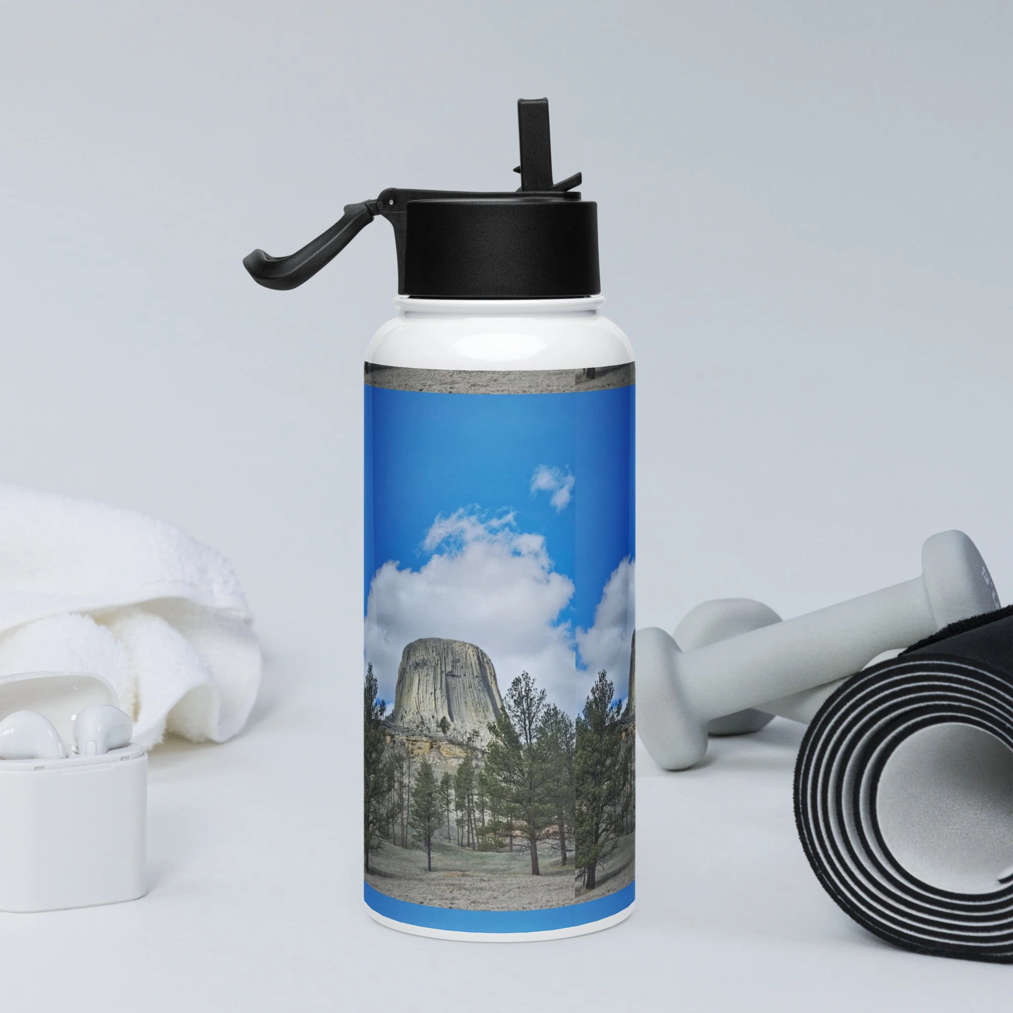 Stay hydrated all day with this 32 oz (950 ml) water bottle. It’s ideal for workouts or busy days, with a wide-mouth foldable straw for spill-free sipping and a rotating handle for easy carrying.