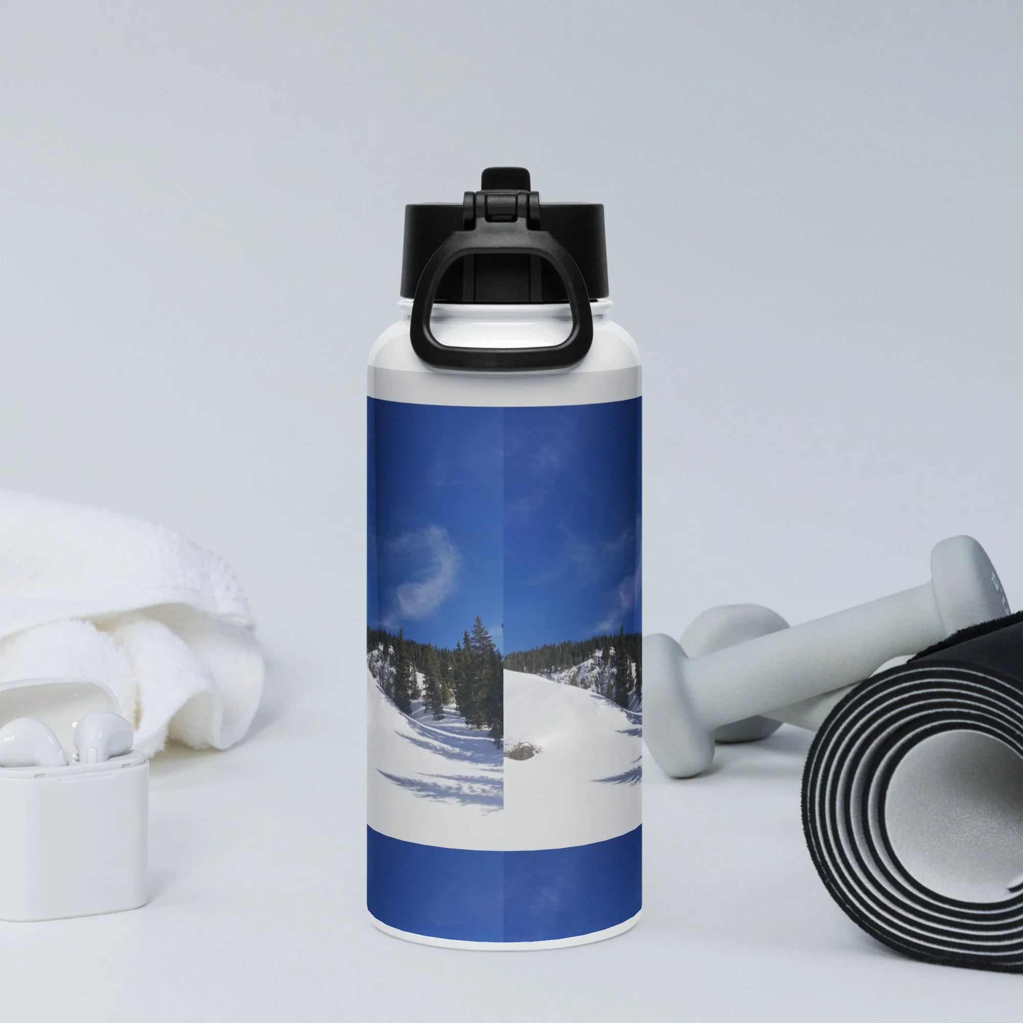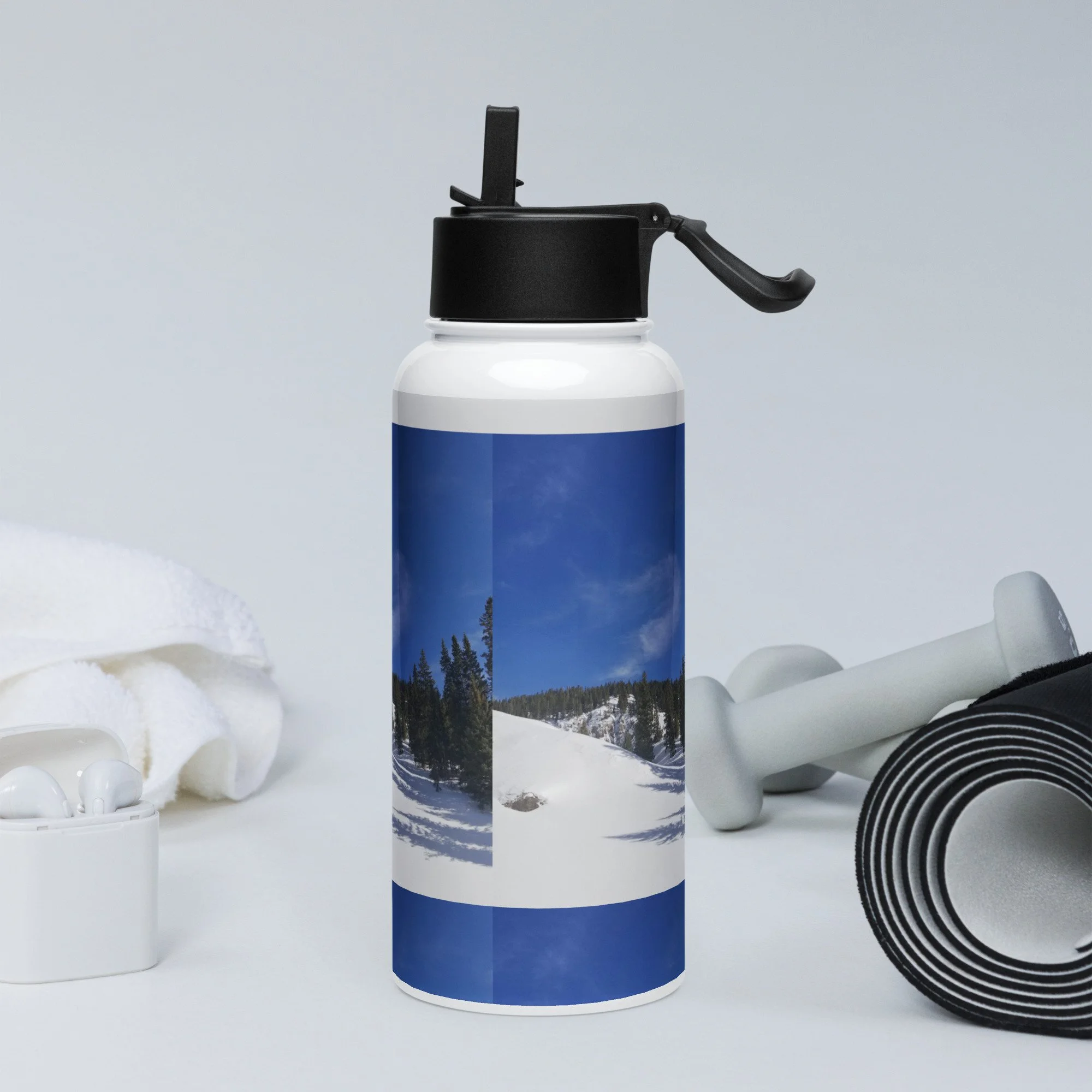 Stay hydrated all day with this 32 oz (950 ml) water bottle. It’s ideal for workouts or busy days, with a wide-mouth foldable straw for spill-free sipping and a rotating handle for easy carrying.