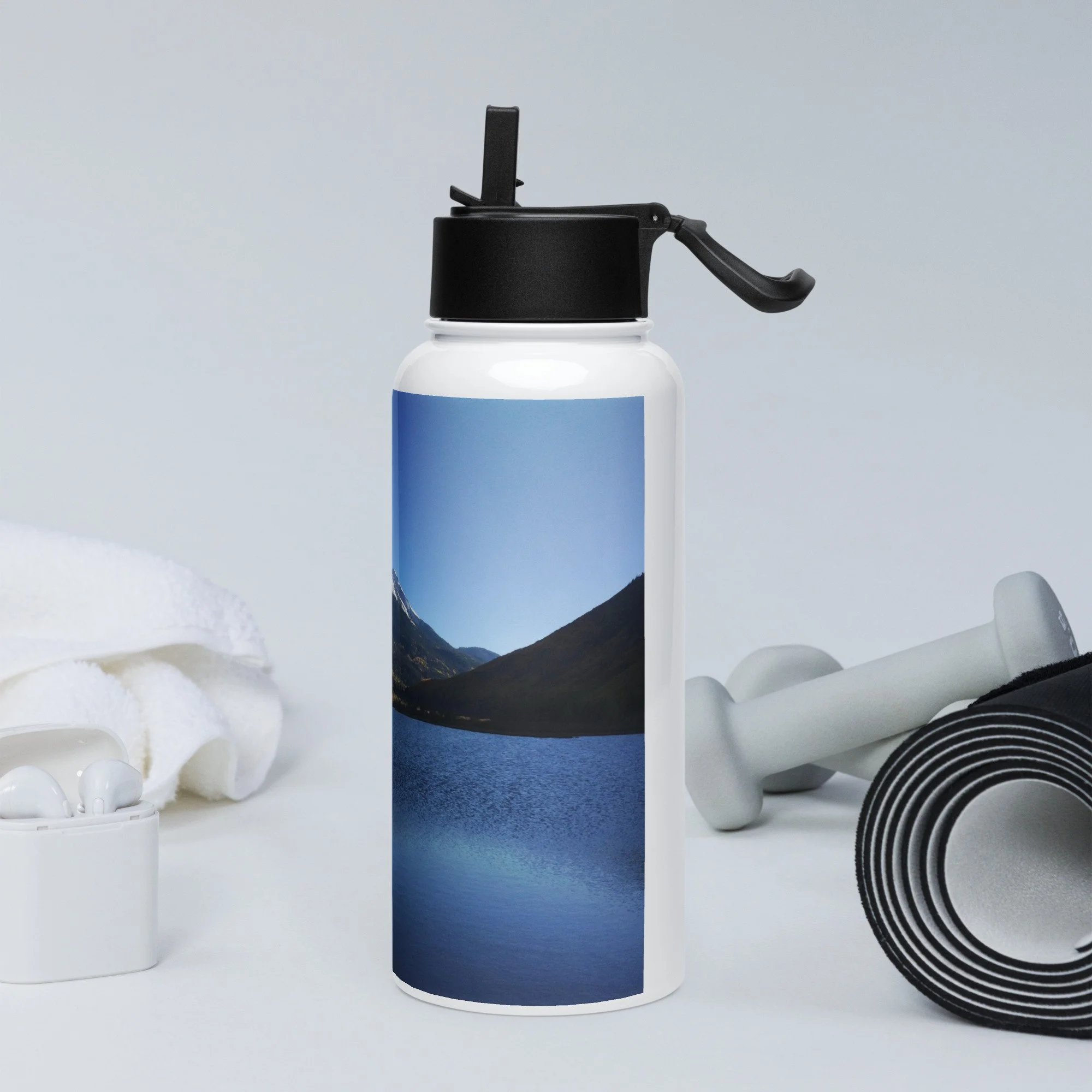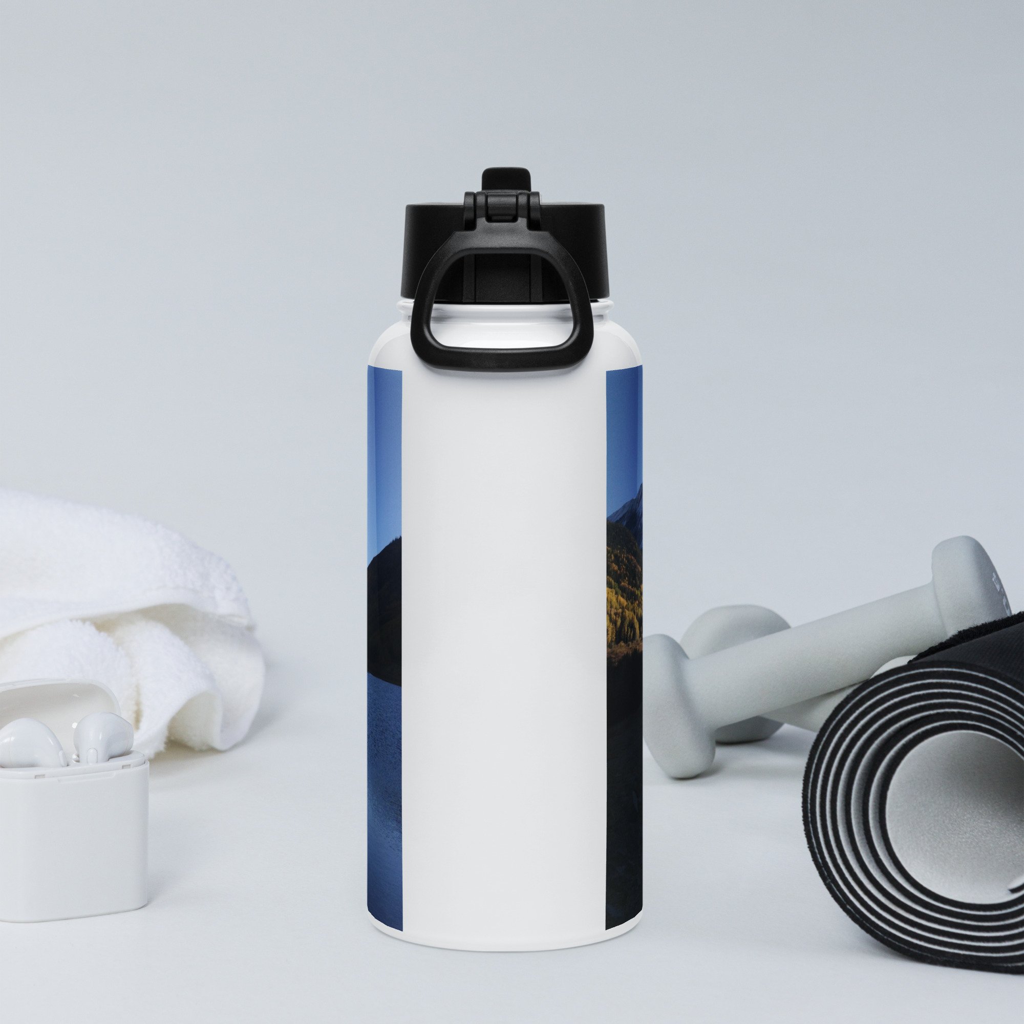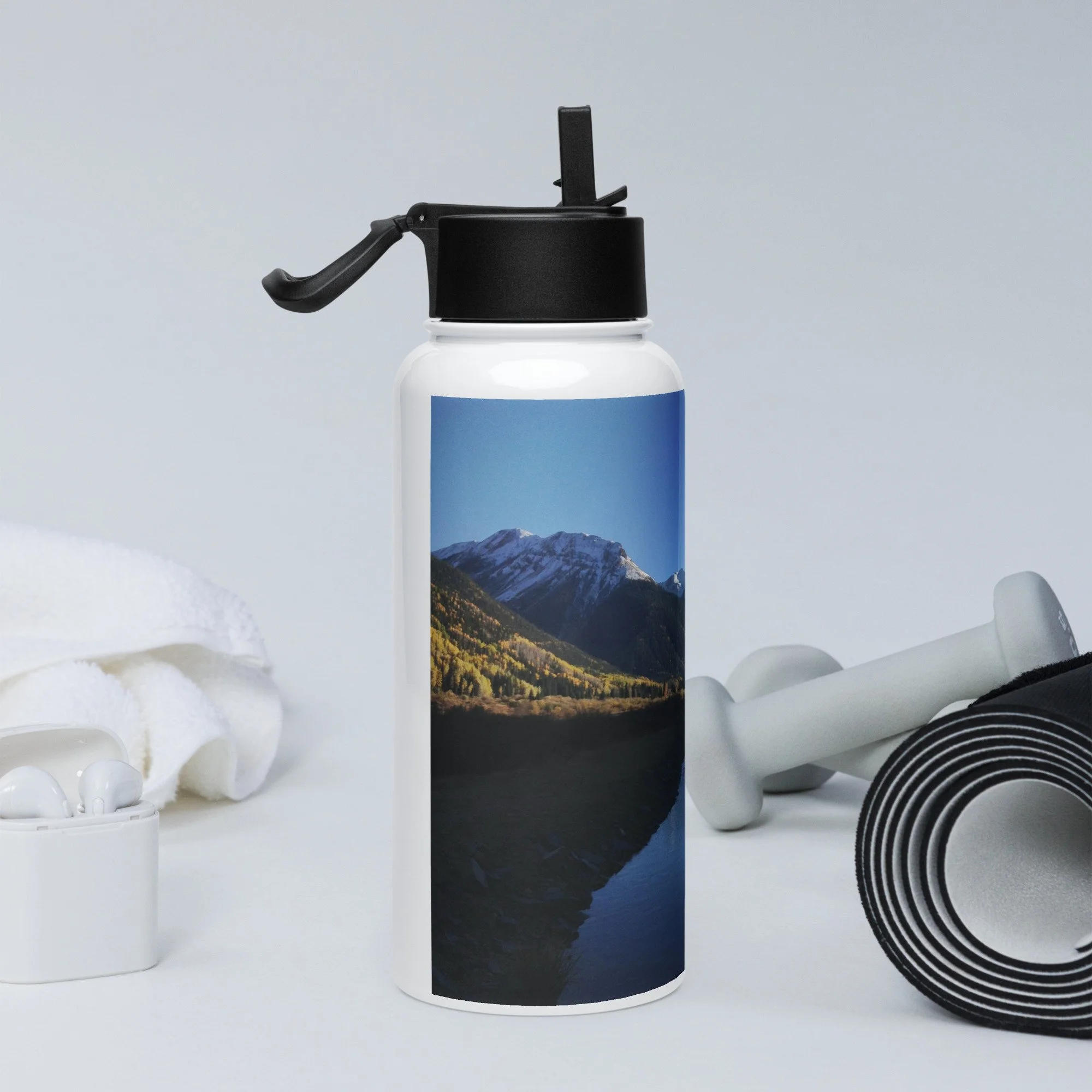 Stay hydrated all day with this 32 oz (950 ml) water bottle. It’s ideal for workouts or busy days, with a wide-mouth foldable straw for spill-free sipping and a rotating handle for easy carrying.