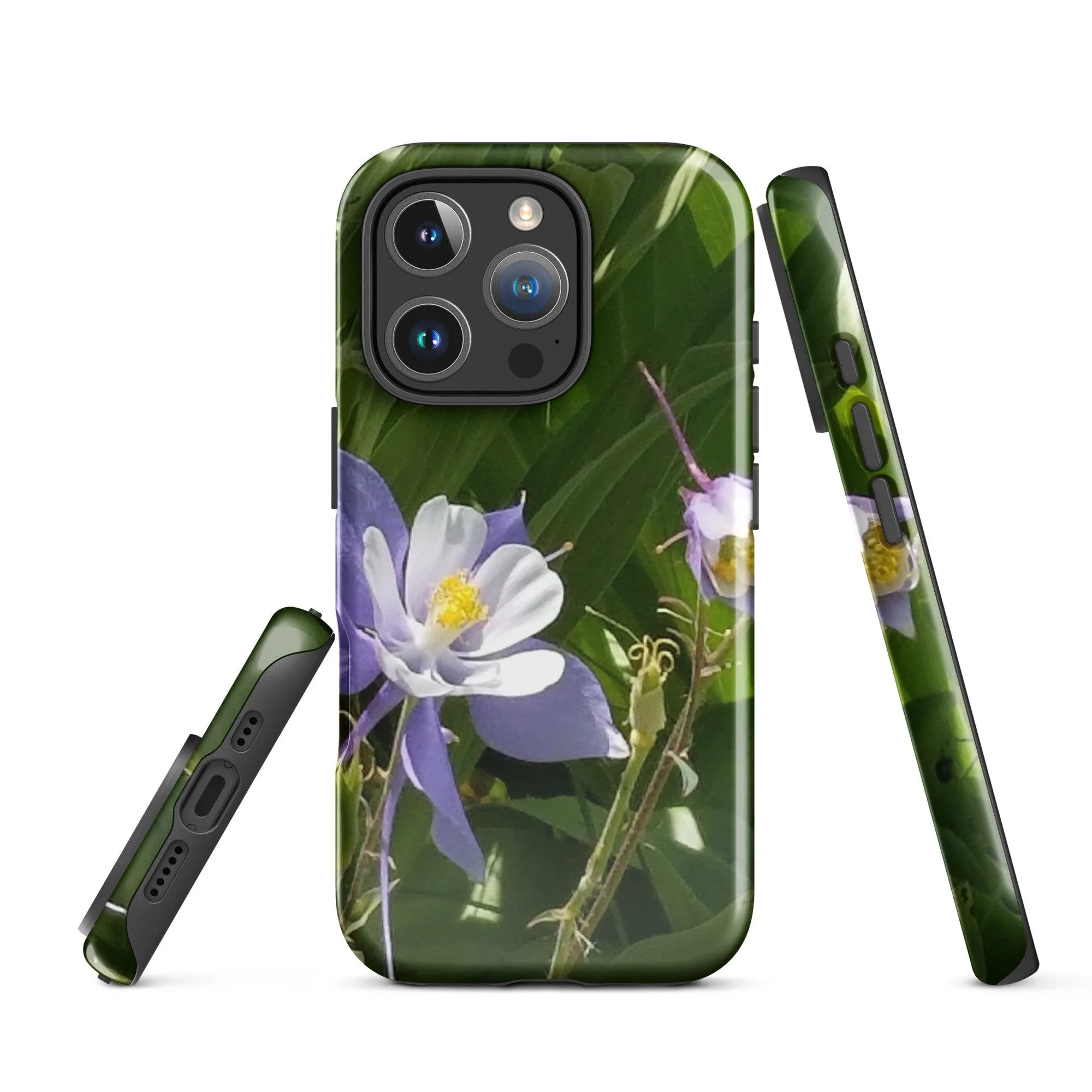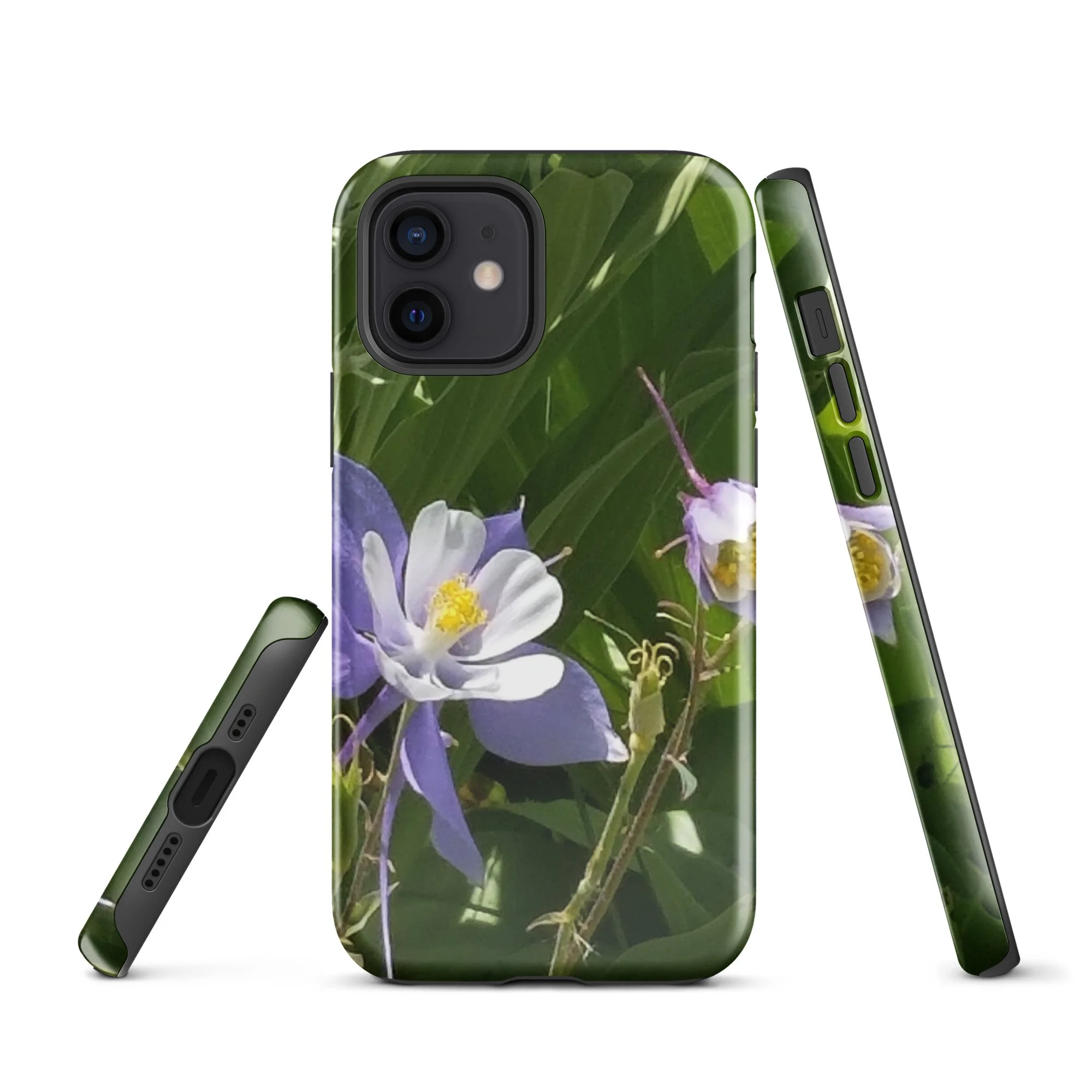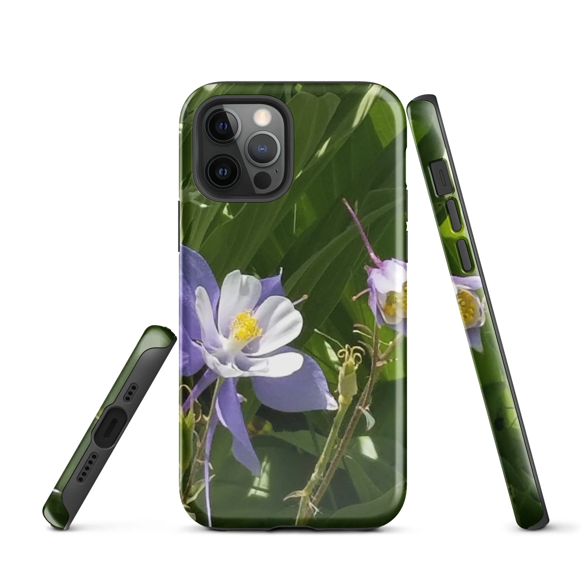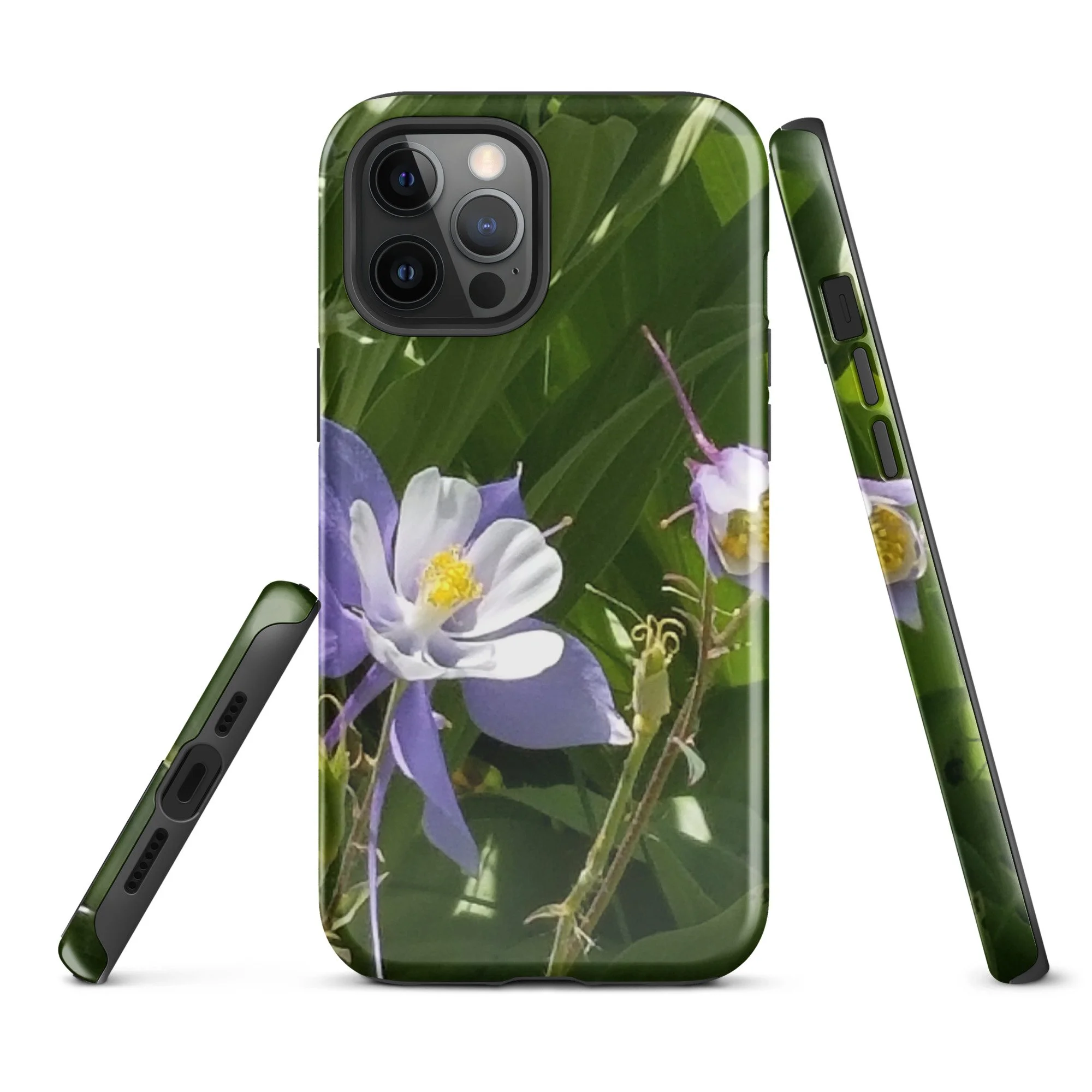 Greetings! This is an original photograph taken of Columbine flowers near the shores of Cataract Lake, in Summit County, Colorado. Rocky Mountain High! These precious flowers only bloom for a few short weeks; then they disappear into memory until summer rolls around again. Columbine (Aquilegia coerulea) is the state flower of Colorado – and it means “sky blue.” So true!