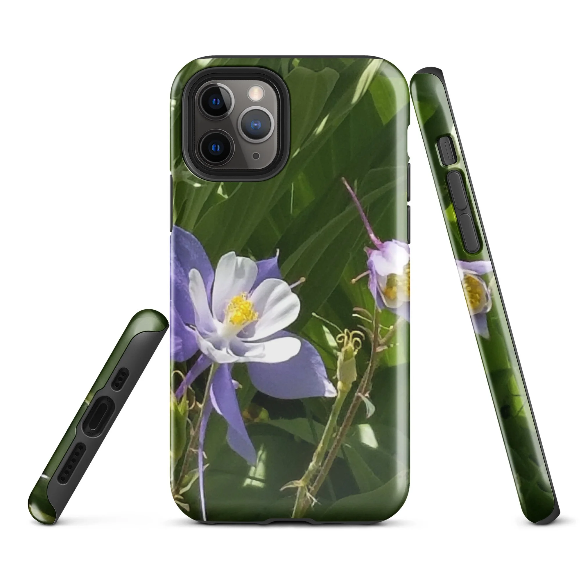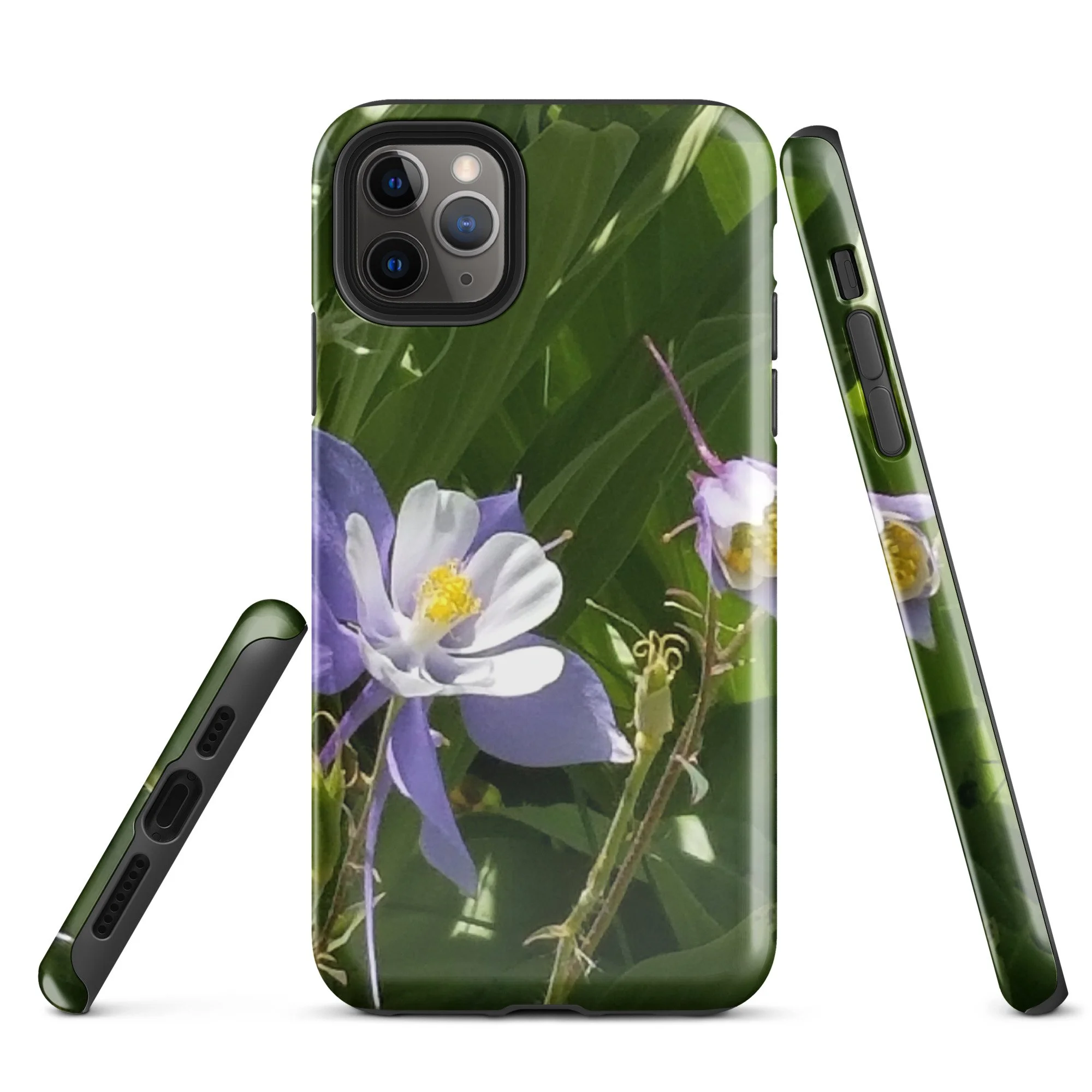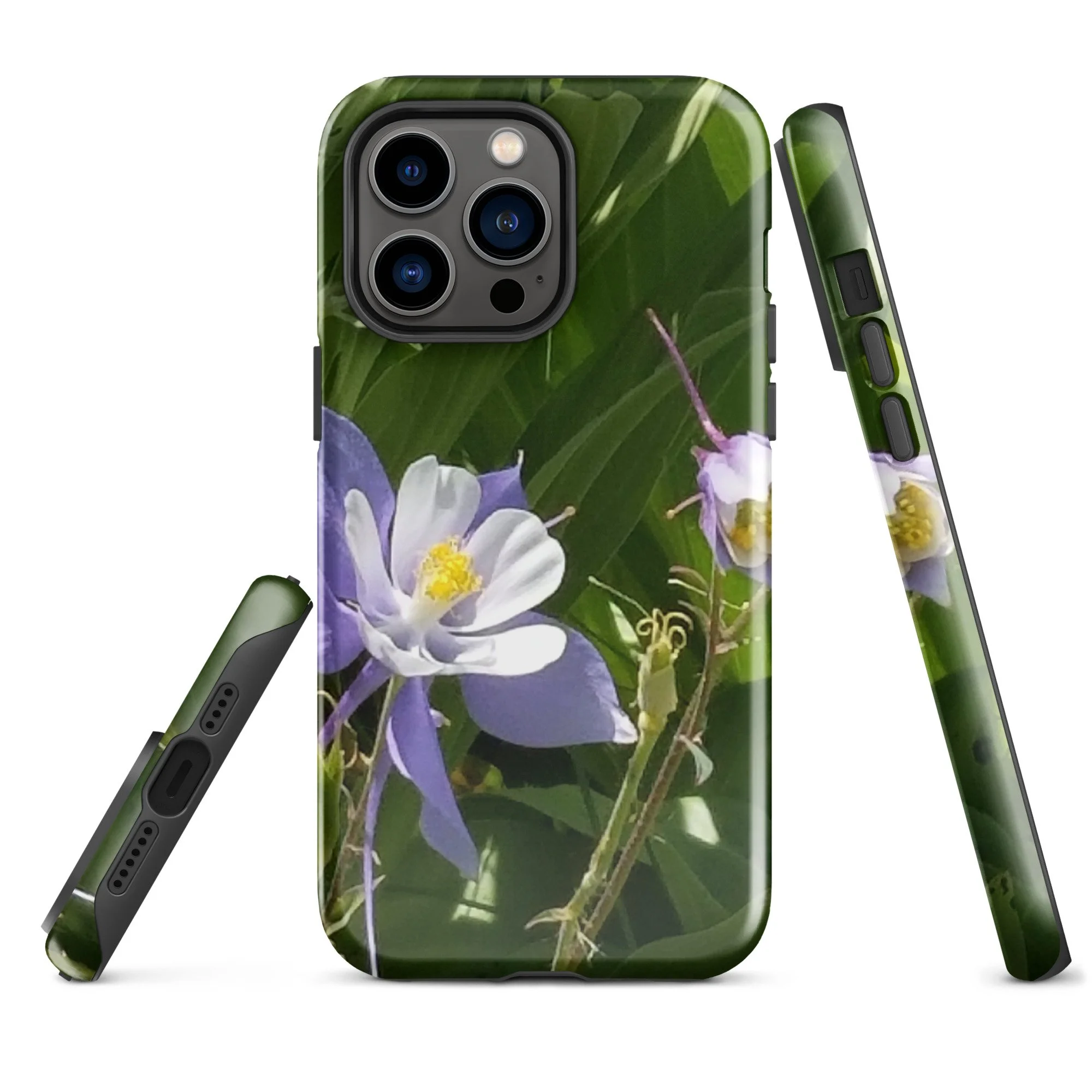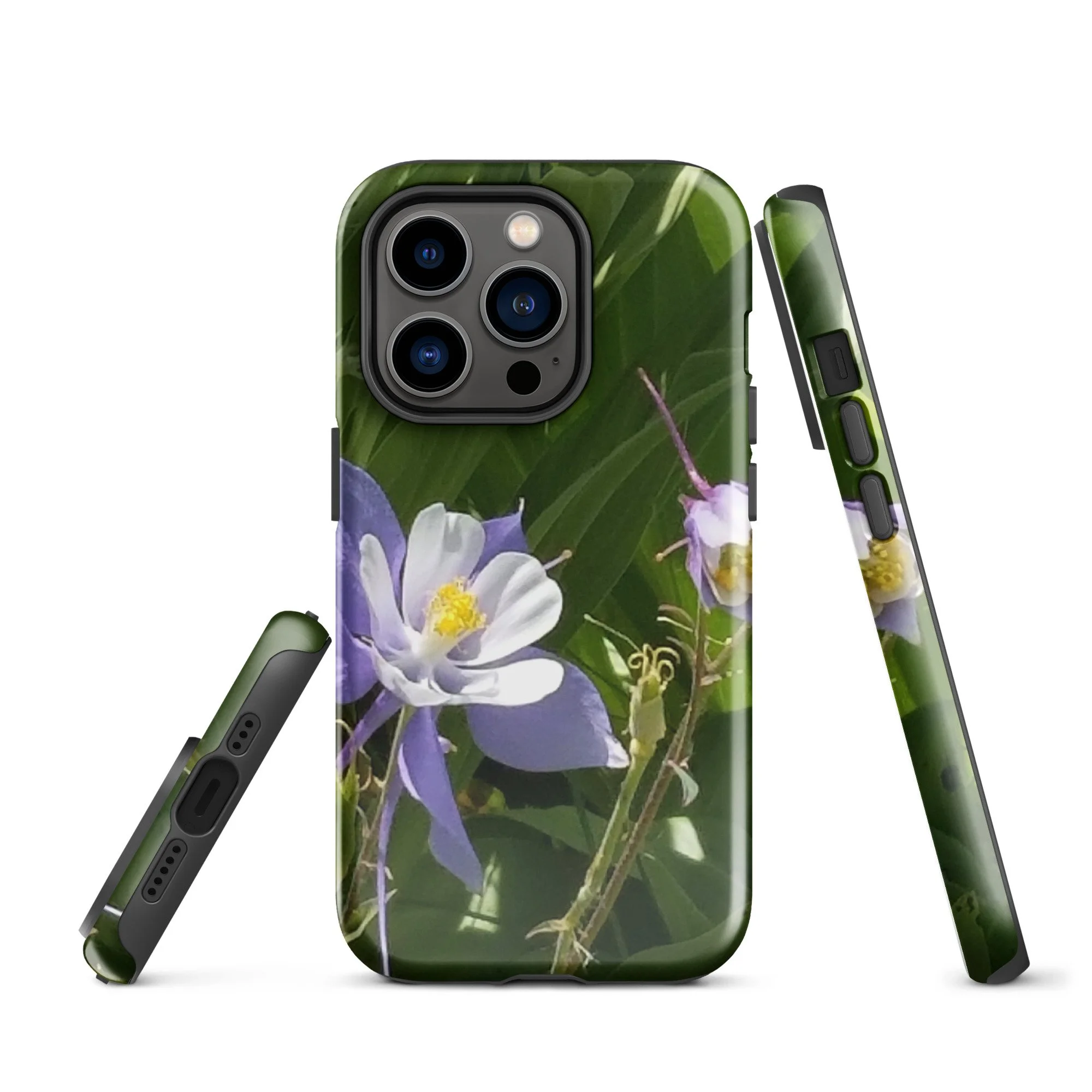 Greetings! This is an original photograph taken of Columbine flowers near the shores of Cataract Lake, in Summit County, Colorado. Rocky Mountain High! These precious flowers only bloom for a few short weeks; then they disappear into memory until summer rolls around again. Columbine (Aquilegia coerulea) is the state flower of Colorado – and it means “sky blue.” So true!