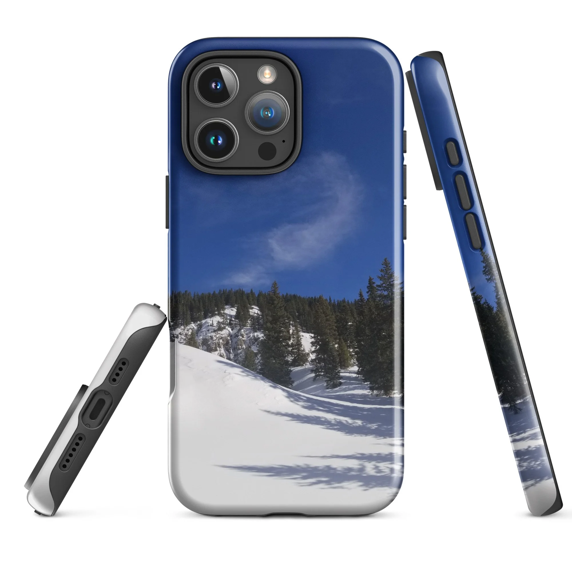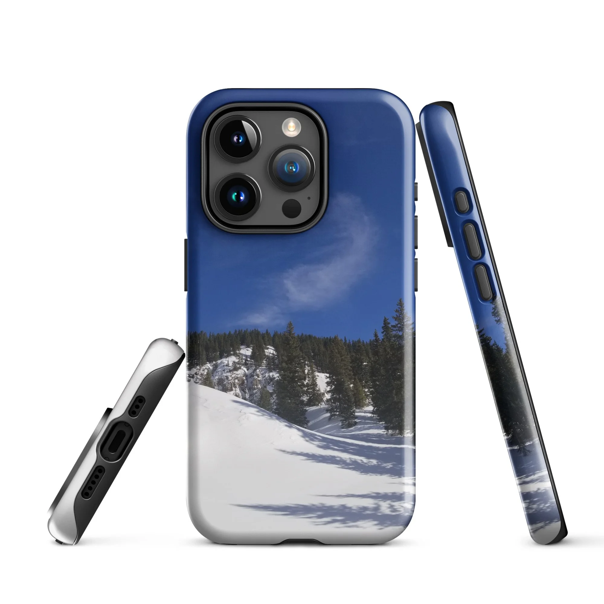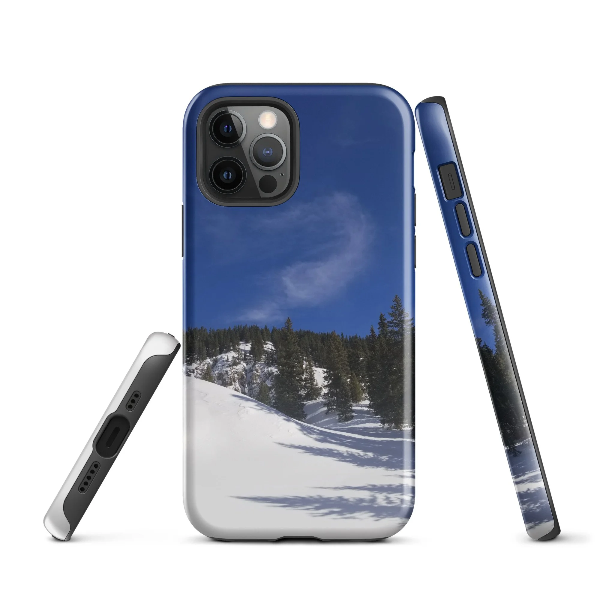 Greetings! This is an original photography, taken in the Colorado mountains. It was the morning after a fresh snow – and I couldn’t resist the “champagne powder” that Colorado is so famous for! (Not to mention to deep blue skies with dancing white clouds!) It was cold out and the sun wasn’t sure it was ready to come out, but the sparkling snow made me happy I was out!