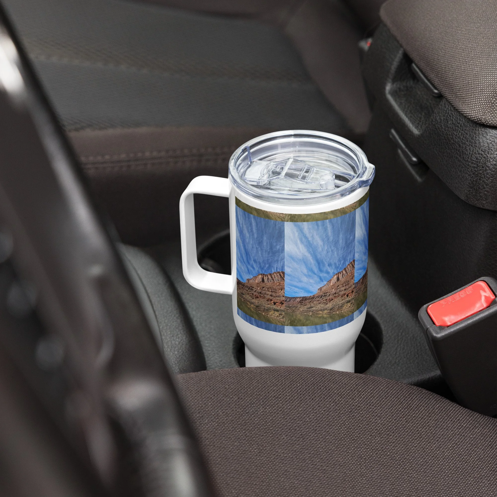 Travel mug with a handle
