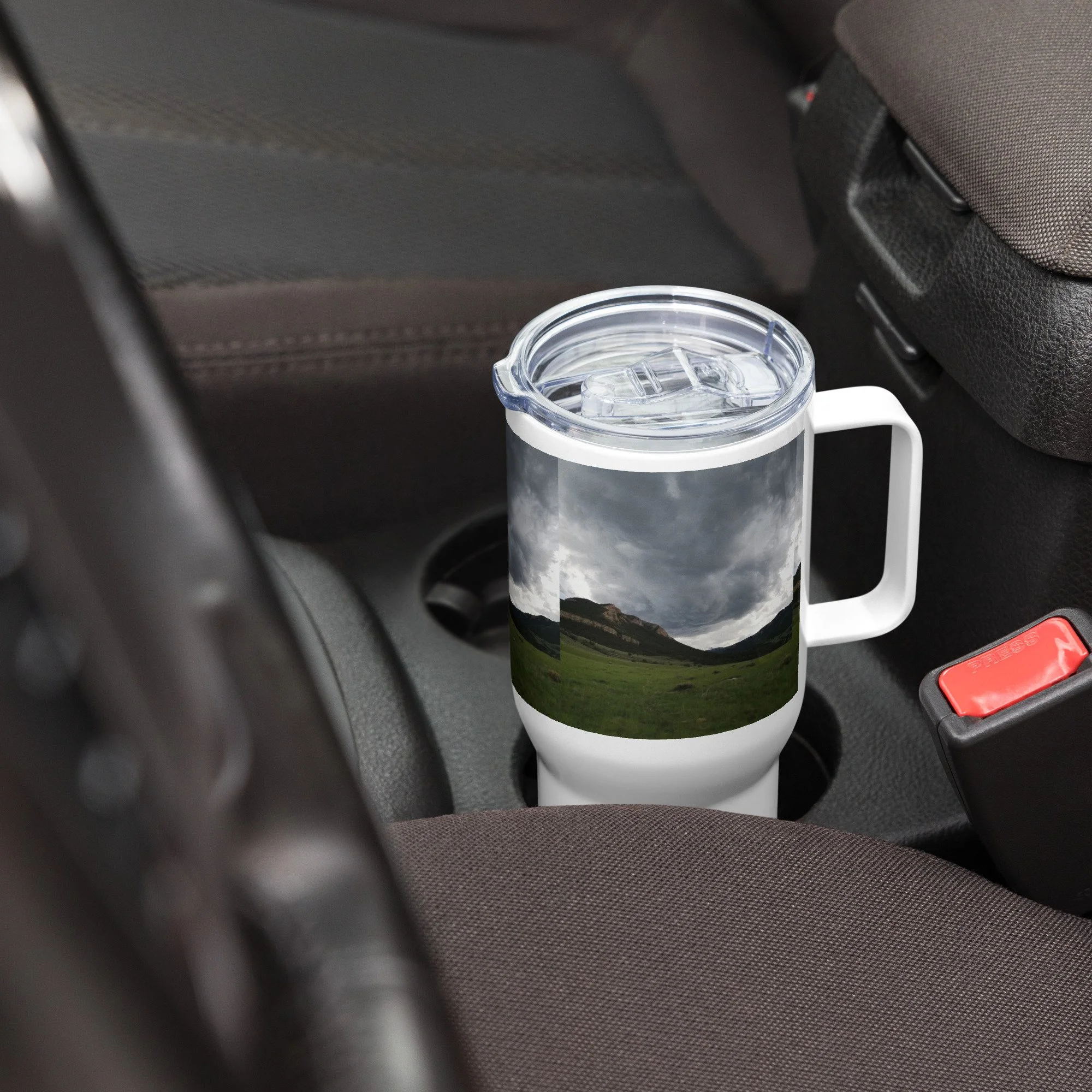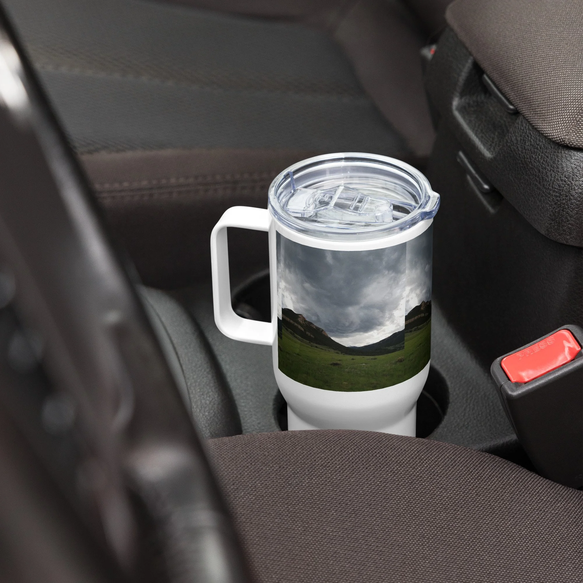 Travel mug with a handle